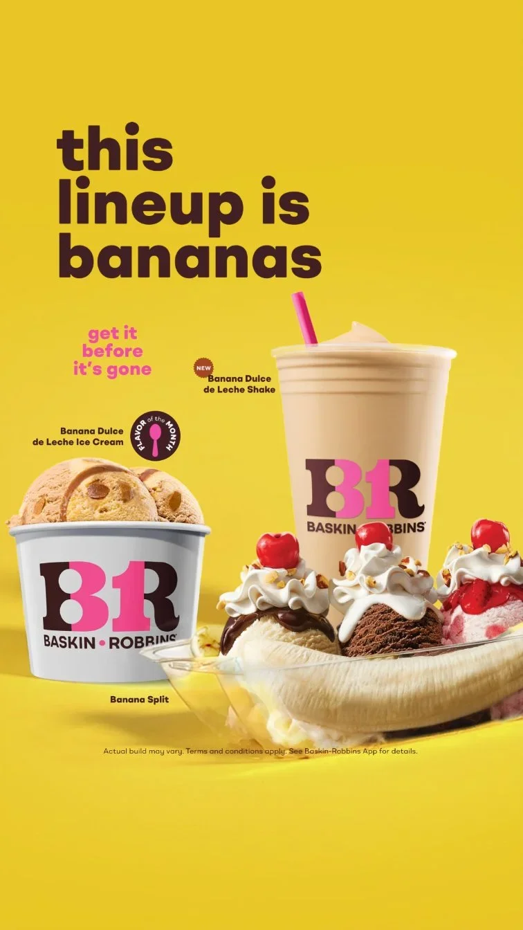Baskin-Robbins wanted a bananas campaign for their new Banana Dulce de Leche flavor and their $6 banana splits. We made it happen with a cinematic food fight that felt deliciously chaotic. Then they made it even more bananas by asking us to turn what we planned to be :30s into :10s without cutting any messaging. Bananas!